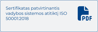 Šiandien mūsų veikla atitinka skirtingų energijos, kokybės, aplinkosaugos ir darbuotojų saugos bei sveikatos ISO standartų