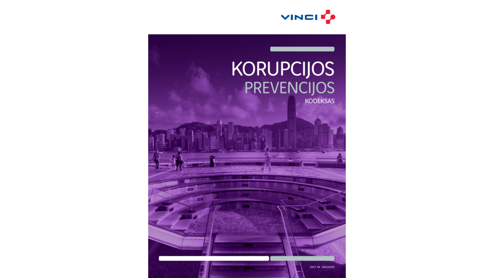 situacijose. Kiekvienas VINCI darbuotojas įpareigojamas laikytis Korupcijos prenevcijos kodekso ir pranešti apie galimus
