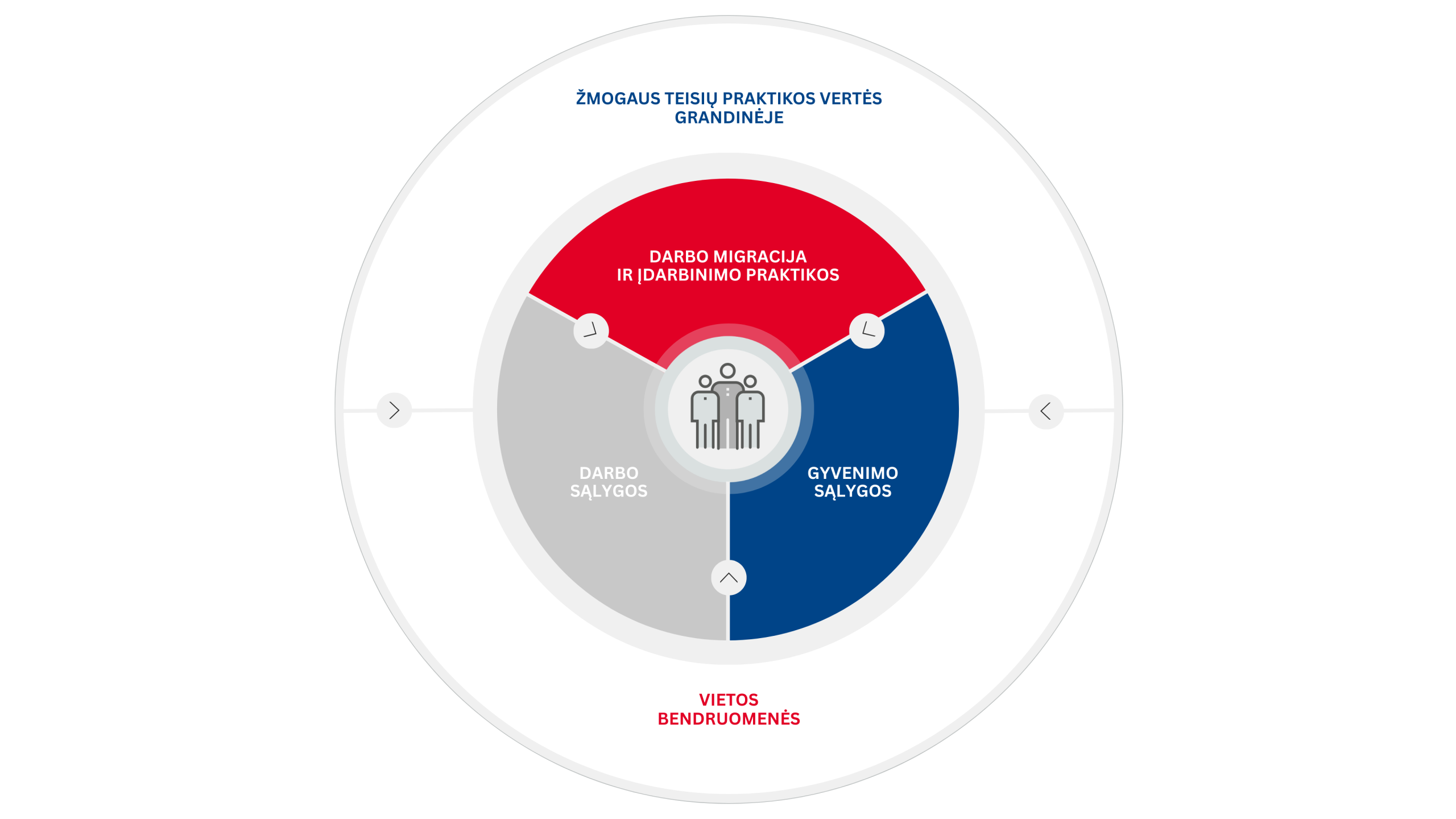 vertės grandinėje bei santykius su vietos bendruomenėmis. Jame nustatyti reikalavimai dėl sąžiningo įdarbinimo, saugių ir oriai